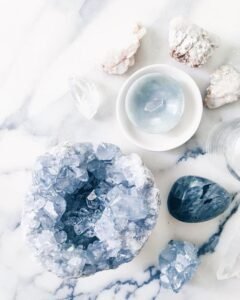 Titreşiminizi pozitif ve dingin tutmaya çalışıyorsanız, selestit taşı kolye ve bileklik takmak,