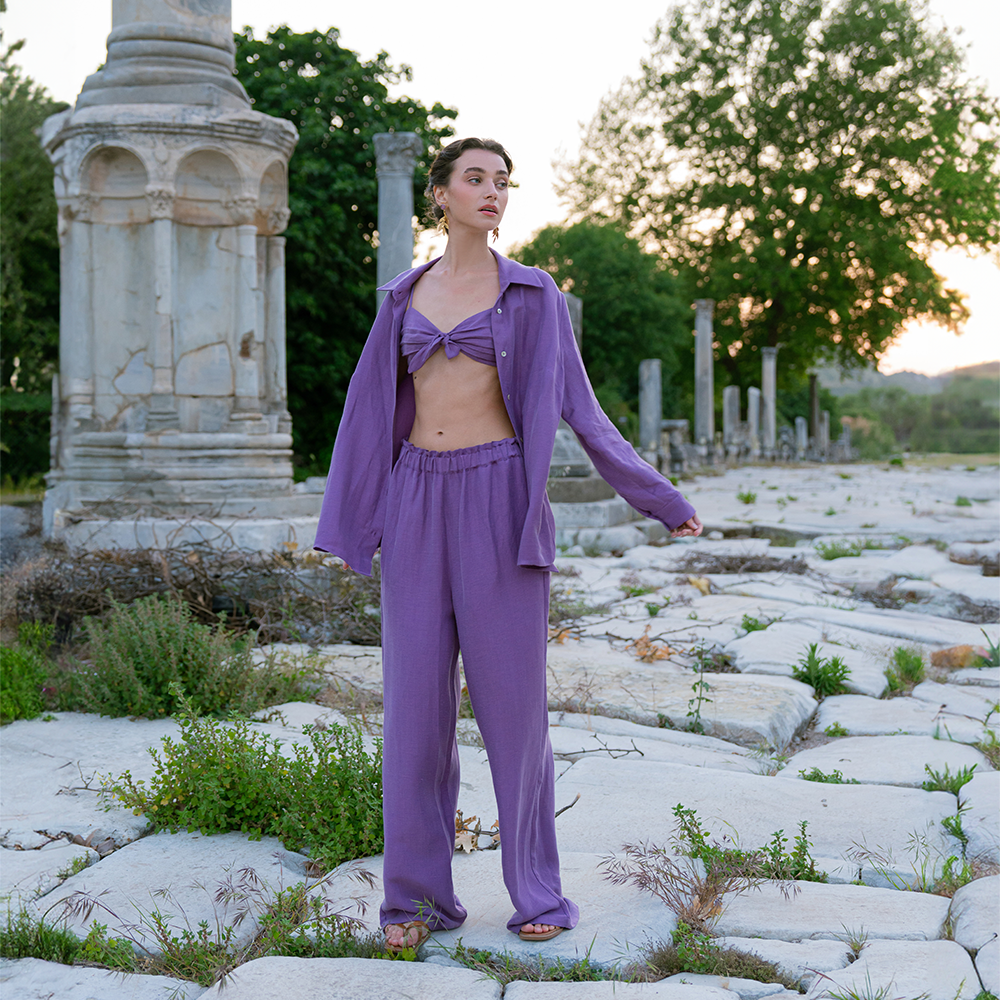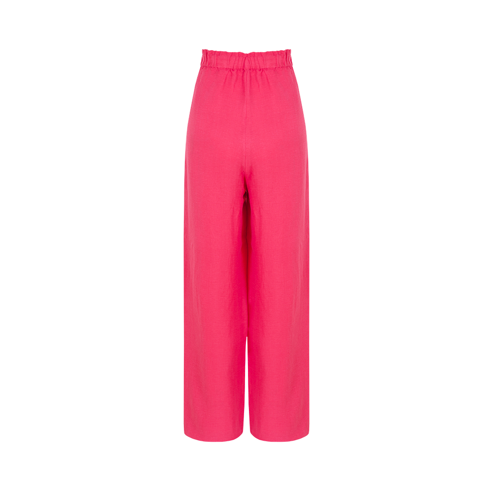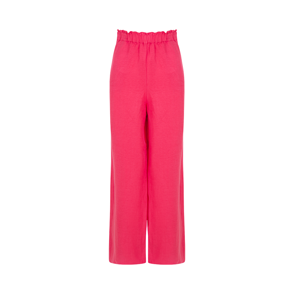 Vegan ipek keten kumaştan yapılmış beli fırfır detaylı kalın lastik pileli pantolon, rahat ve şık bir görünüm sunar.Hafif ve Rahat Tasarımıyla Her Adımda Özgürlüğü ve Neşeyi Taşıyor. Hem günlük giyimde hem de özel etkinliklerde kullanabileceğiniz çok yönlü bir parçadır. Üst olarak salaş bir bluz, şık bir gömlek veya Fiolas’ın büstiyerlerini tercih edebilirsiniz. Şık topuklu ayakkabılar veya sandaletlerle tamamlanarak tarzınızı vurgulayabilirsiniz.