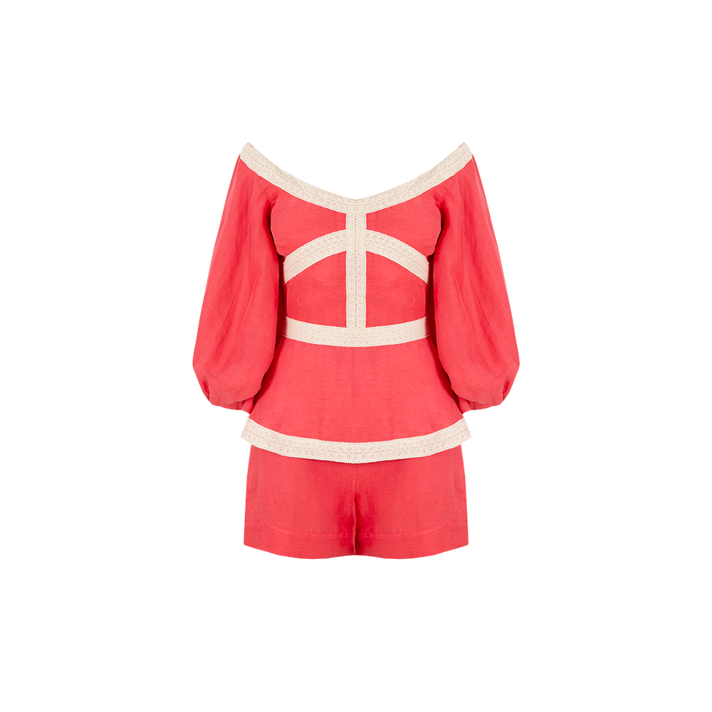 Pembe renkteki şortlu takım, vegan ipek keten kumaşının hafif ve şık dokusunu taşır. Düşük omuzlar ve dantel detaylarıyla antik bir stil sunuyor olacak. Hem rahatlık hem de şıklık arayanlar için ideal bir seçenektir. Yaz aylarında günlük ve şık kombinler için mükemmel bir tercih olabilir. Sandaletler, babetler veya platform ayakkabılarla tamamlanarak trendy bir görünüm elde edebilirsiniz.
